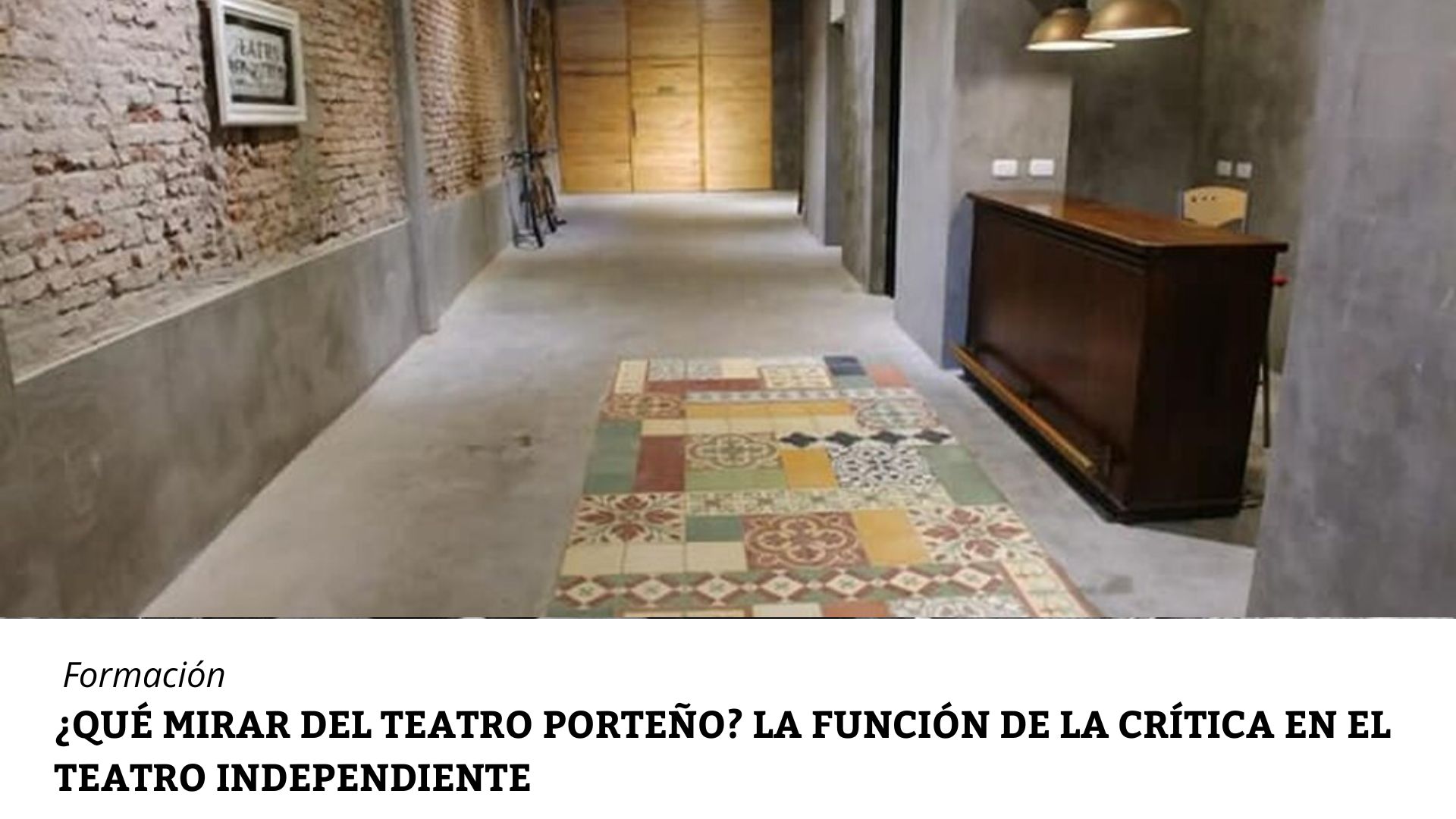 El seminario ¿Qué mirar del teatro porteño? La función de la crítica en el teatro independiente tiene la inquietud de reflexionar sobre una actividad cultural como la crítica periodística y académica que describe, interpreta e indaga en las producciones teatrales del teatro porteño. Encontrar sus diversos niveles de lecturas y su organización acerca un fenómeno efímero como el teatro y brinda en principio un registro histórico y más en profundidad una lectura que avanza sobre una concepción de mundo.